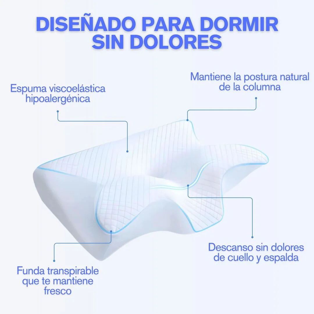 Se adapta a tu cuello y cabeza, ofreciendo un soporte personalizado que ayuda a reducir el dolor de cuello, cervicales, hombros, espalda y cadera. Al promover una mejor alineación de la columna, mejora la calidad general de tu sueño y reduce los movimientos nocturnos.